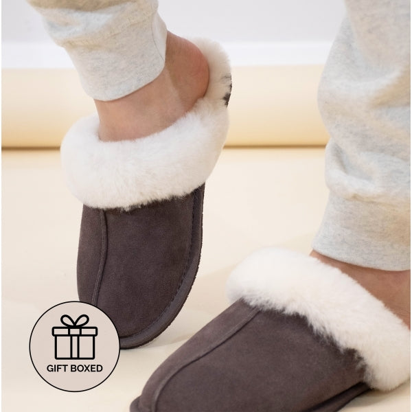 HOS Sheepskin AYLA Womens Real Sheepskin Mule Slippers Espresso